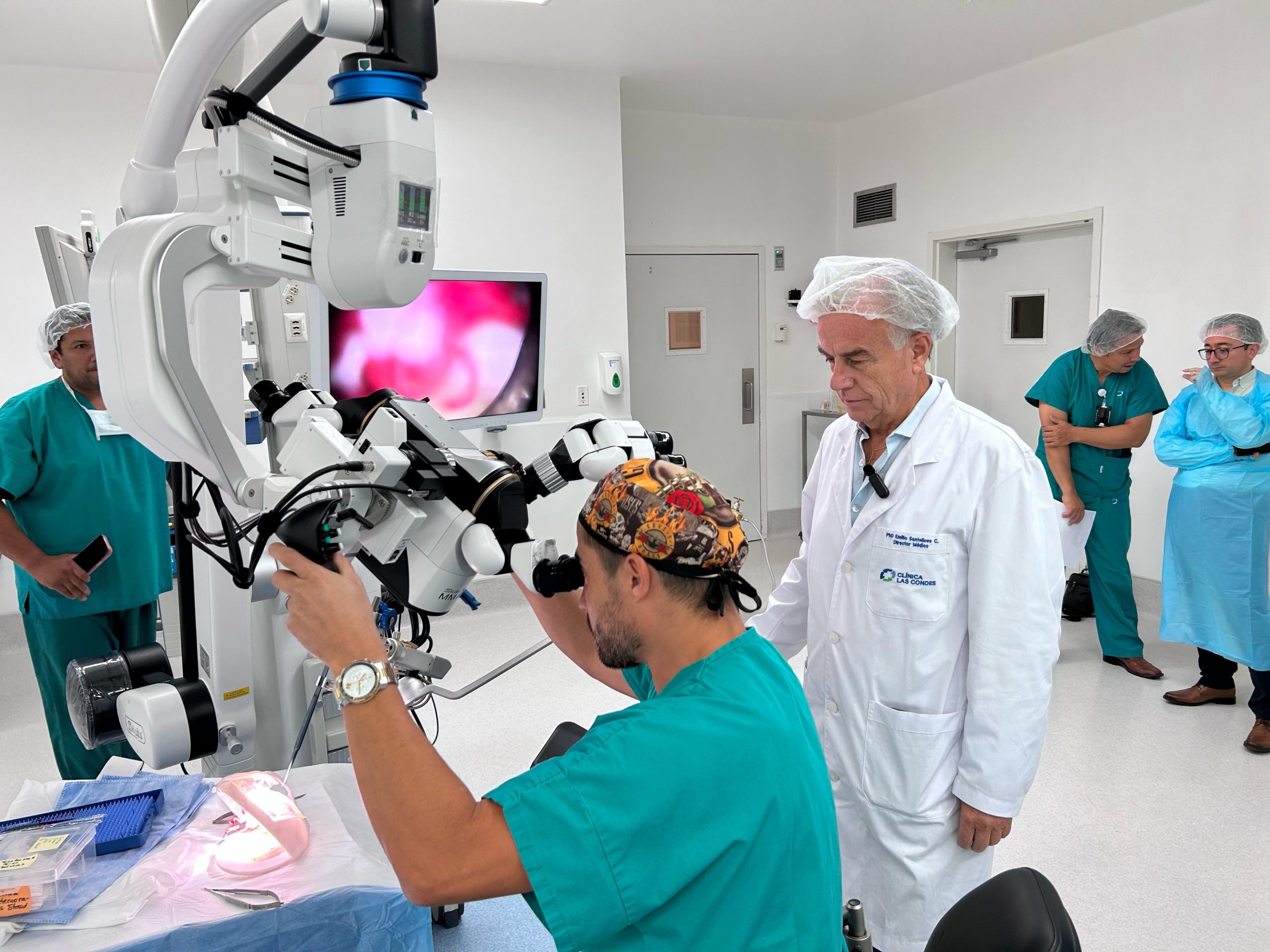 El sistema fue recibido por el Director Médico de Clínica Las Condes, Dr. Emilio Santelices y el jefe de Neurocirugía, Dr. Víctor Hernández quienes tuvieron la oportunidad de conocer de primera mano las bondades del Microscopio MM77, quedando gratamente sorprendidos con las prestaciones que el sistema ofrece y que impactan directamente en el bienestar de los pacientes.